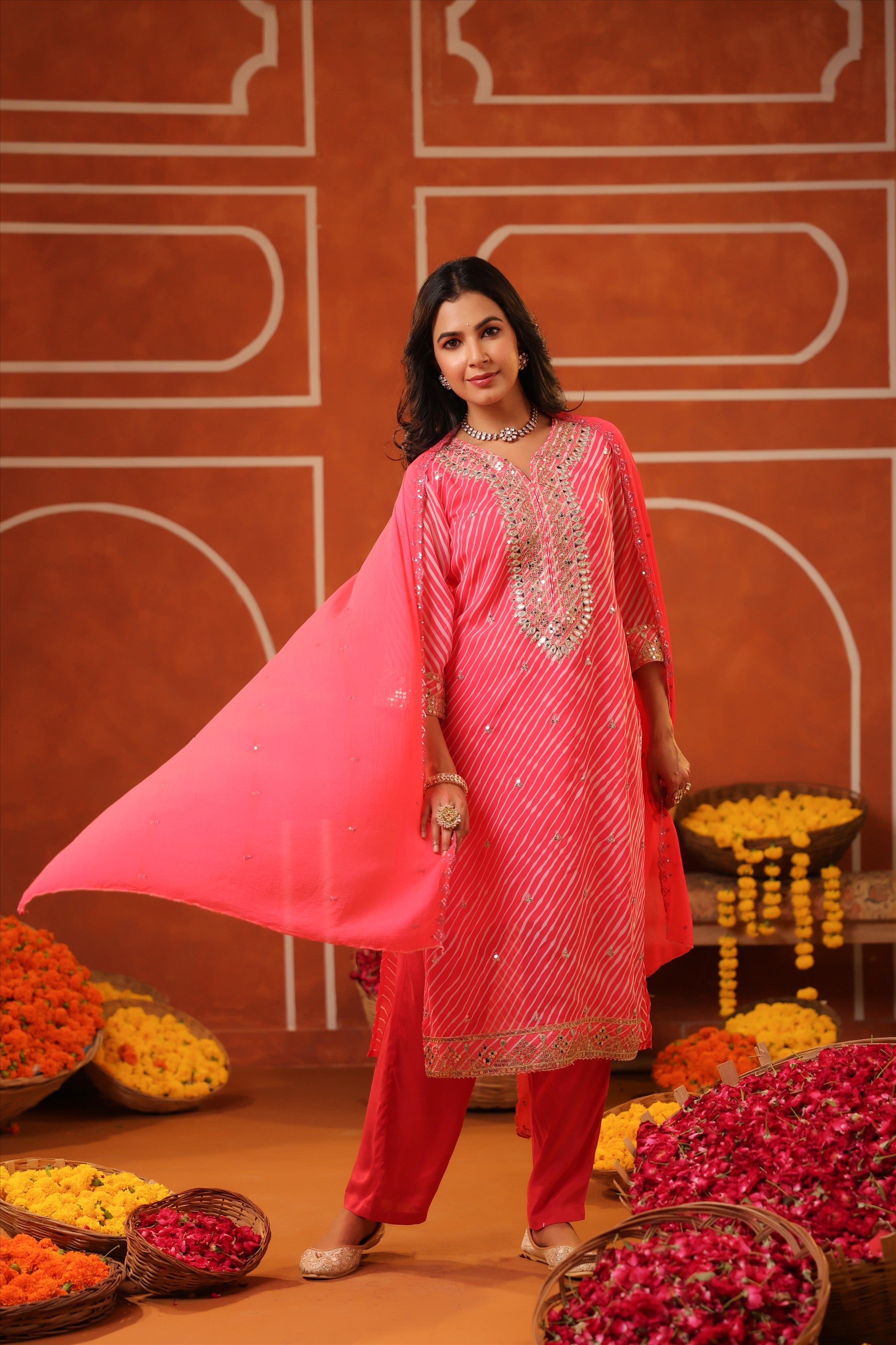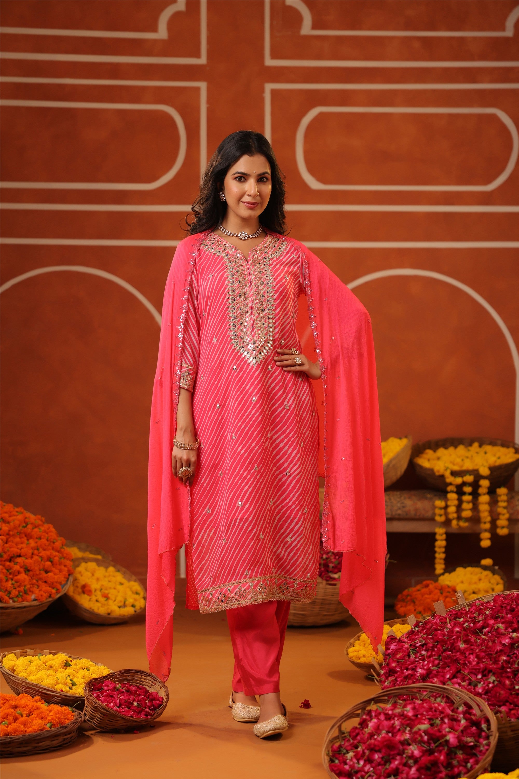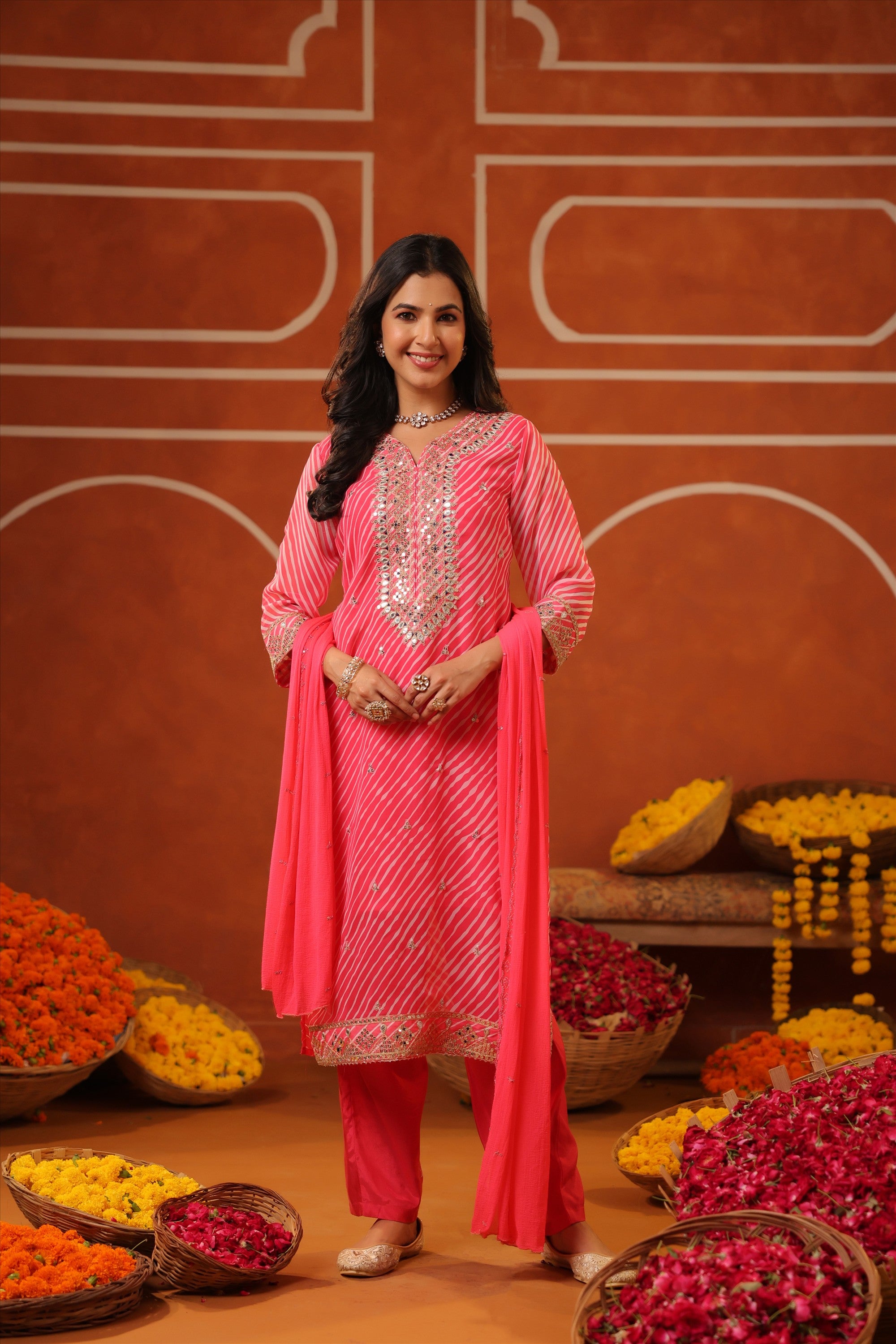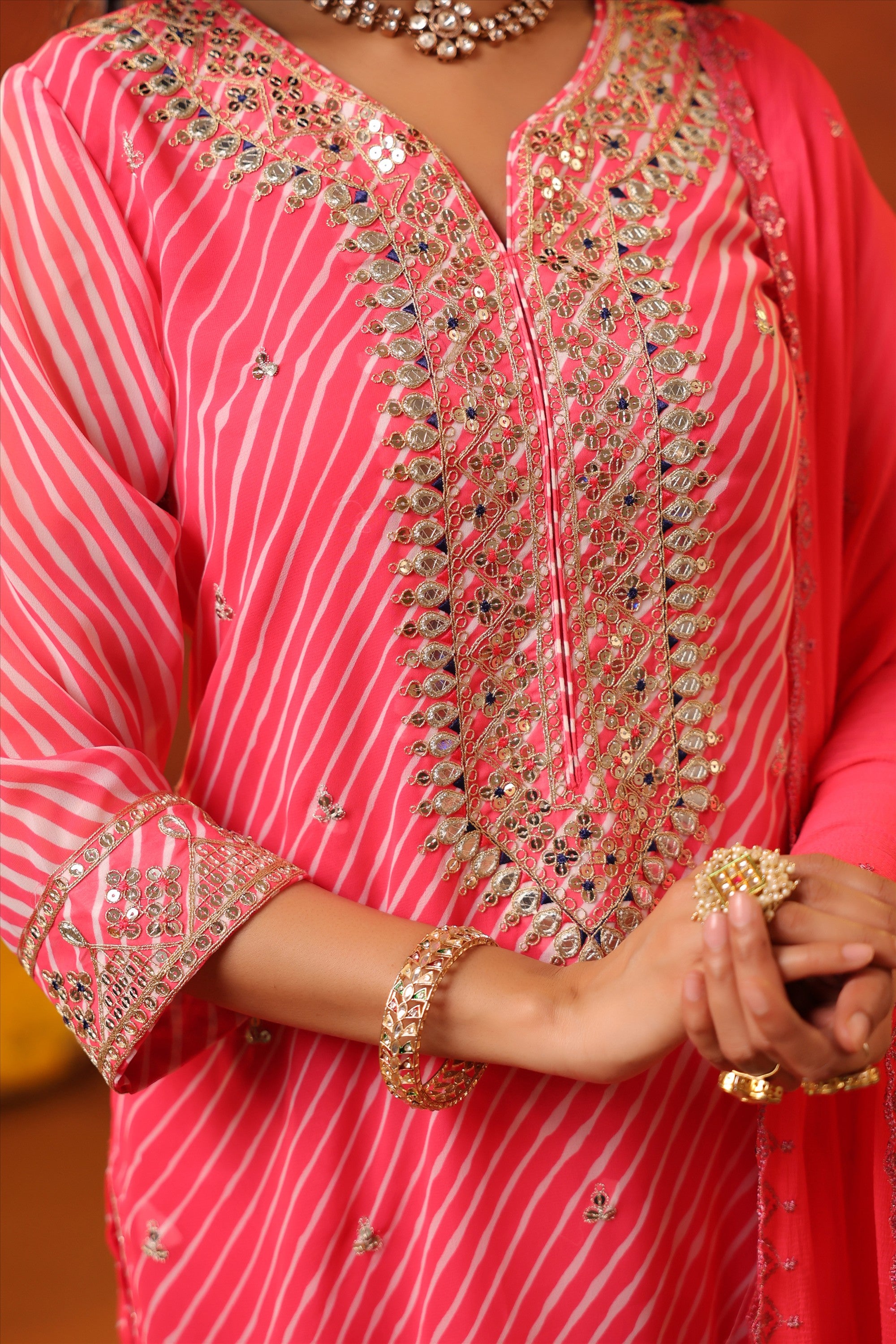 Coral Leheriya Georgette Embroidered Straight Suit Set