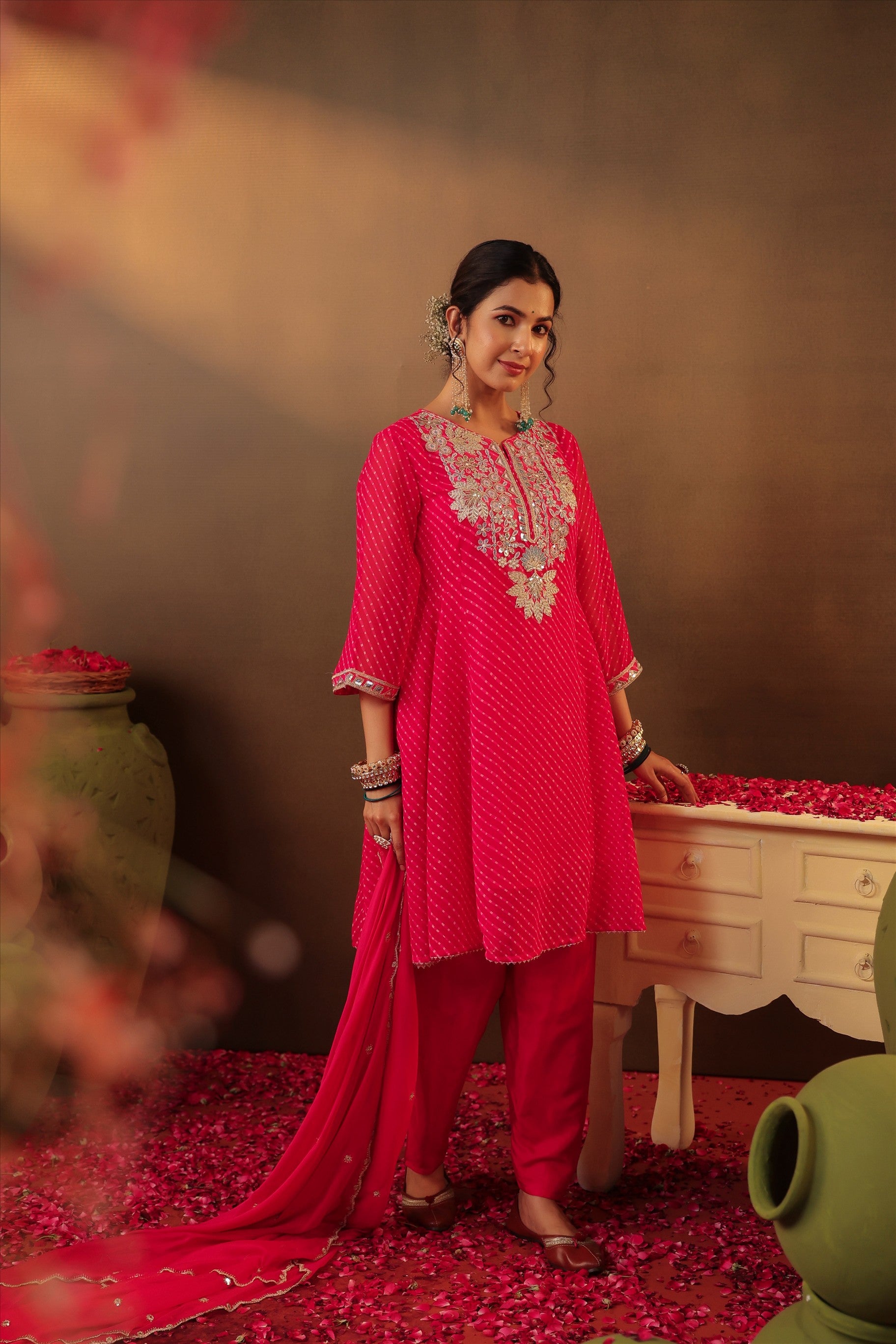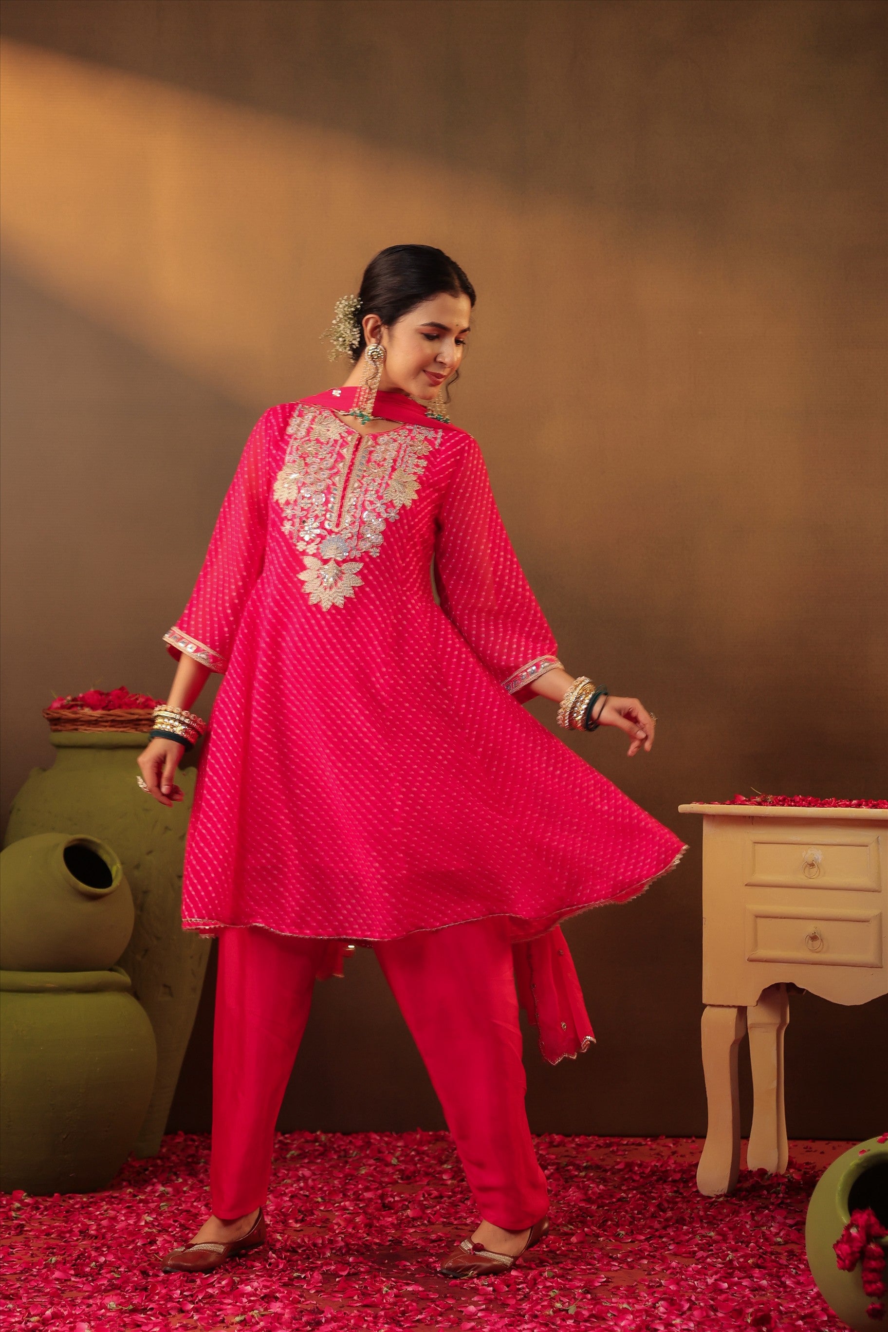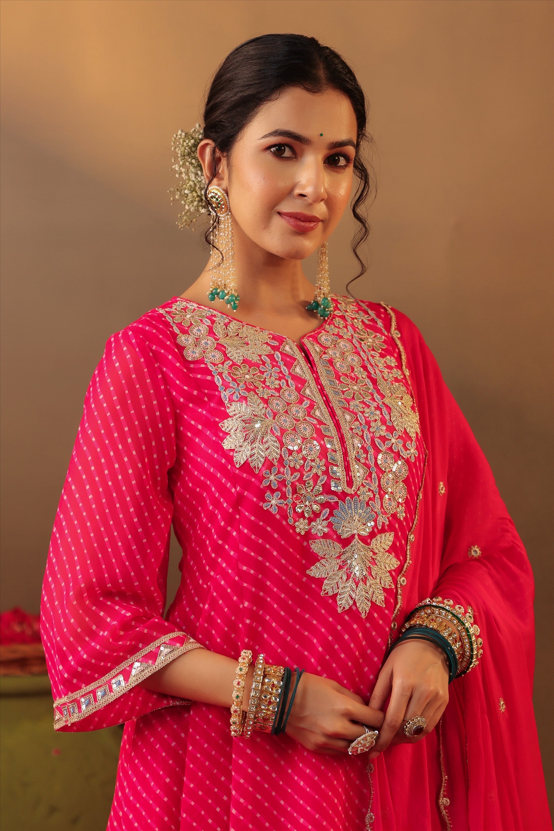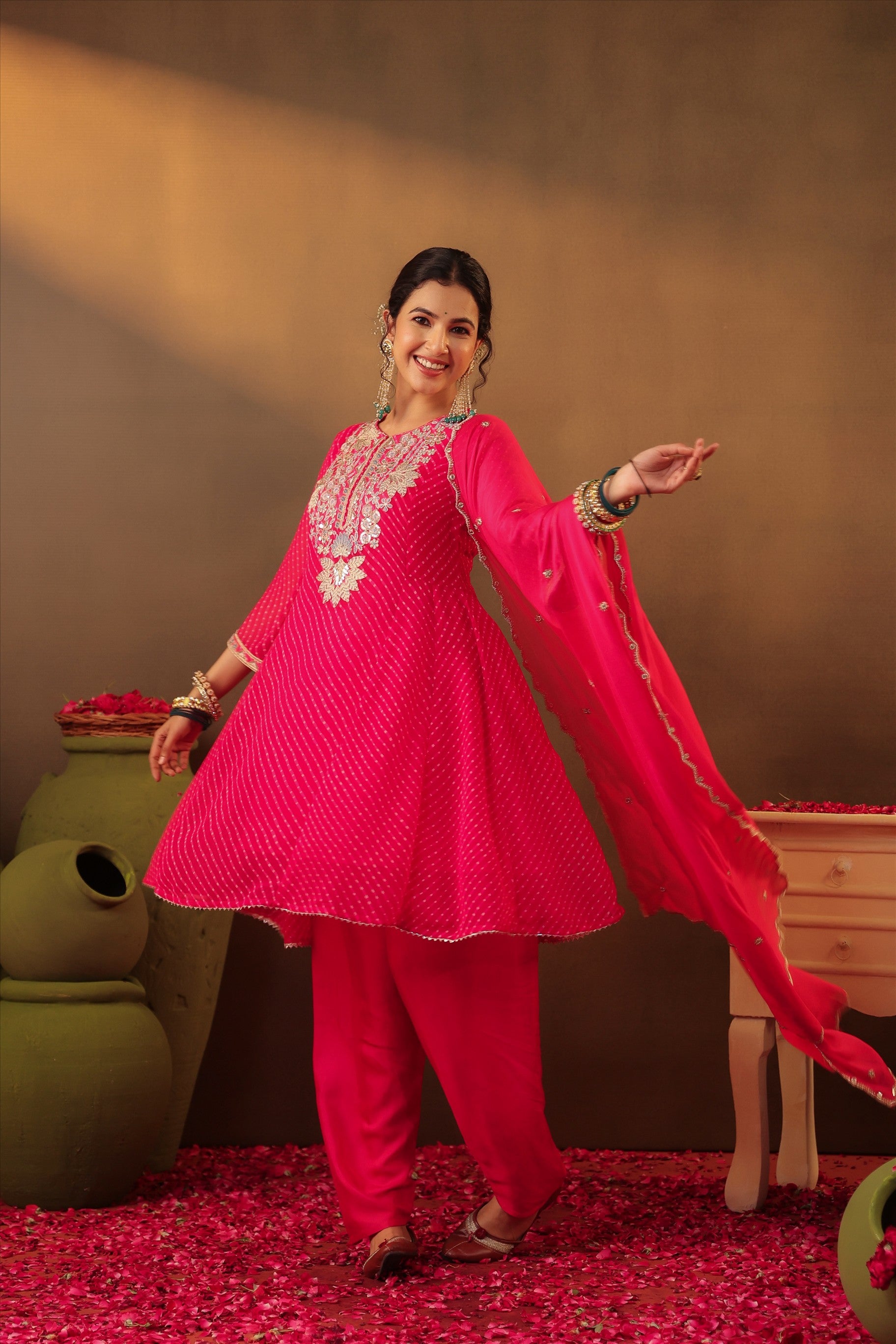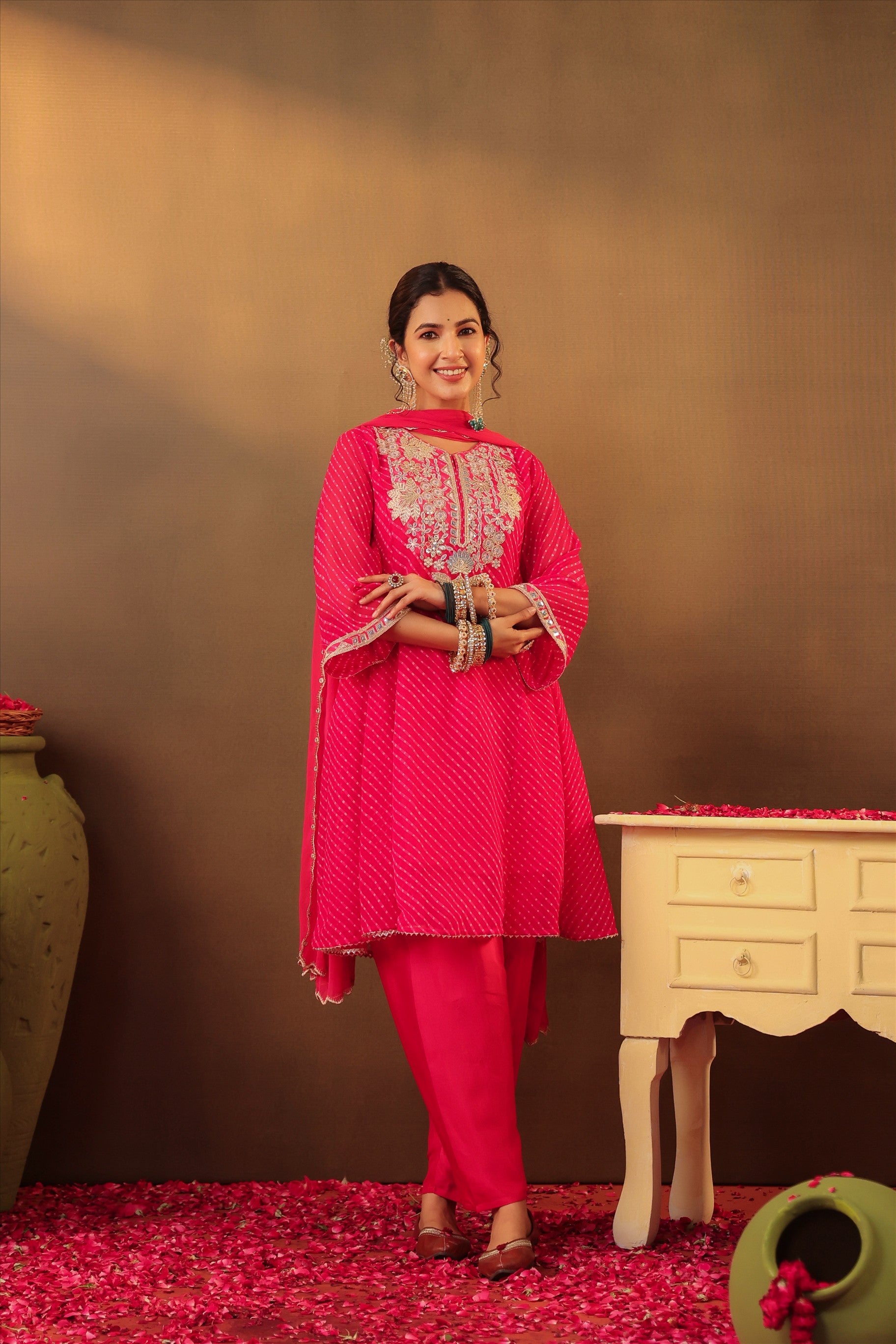 Fuchsia Mothra Embroidered Georgette Anarkali Suit Set