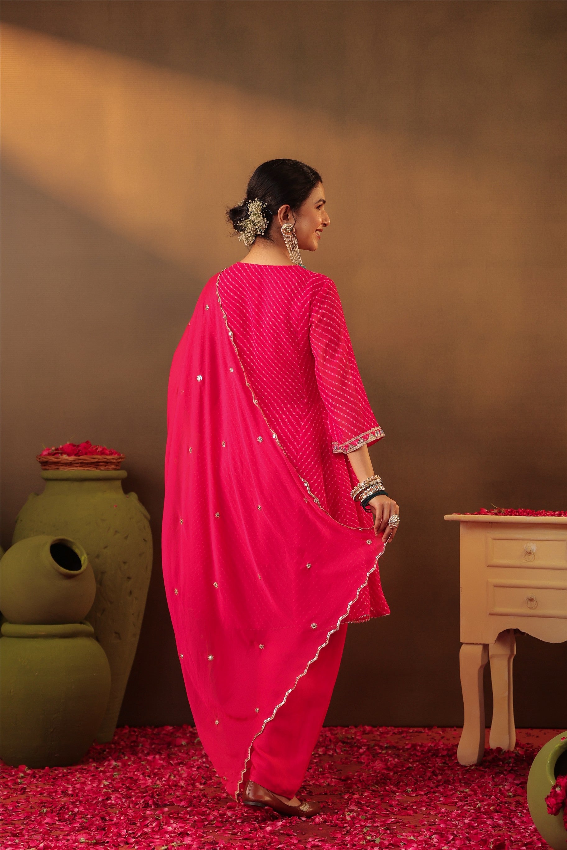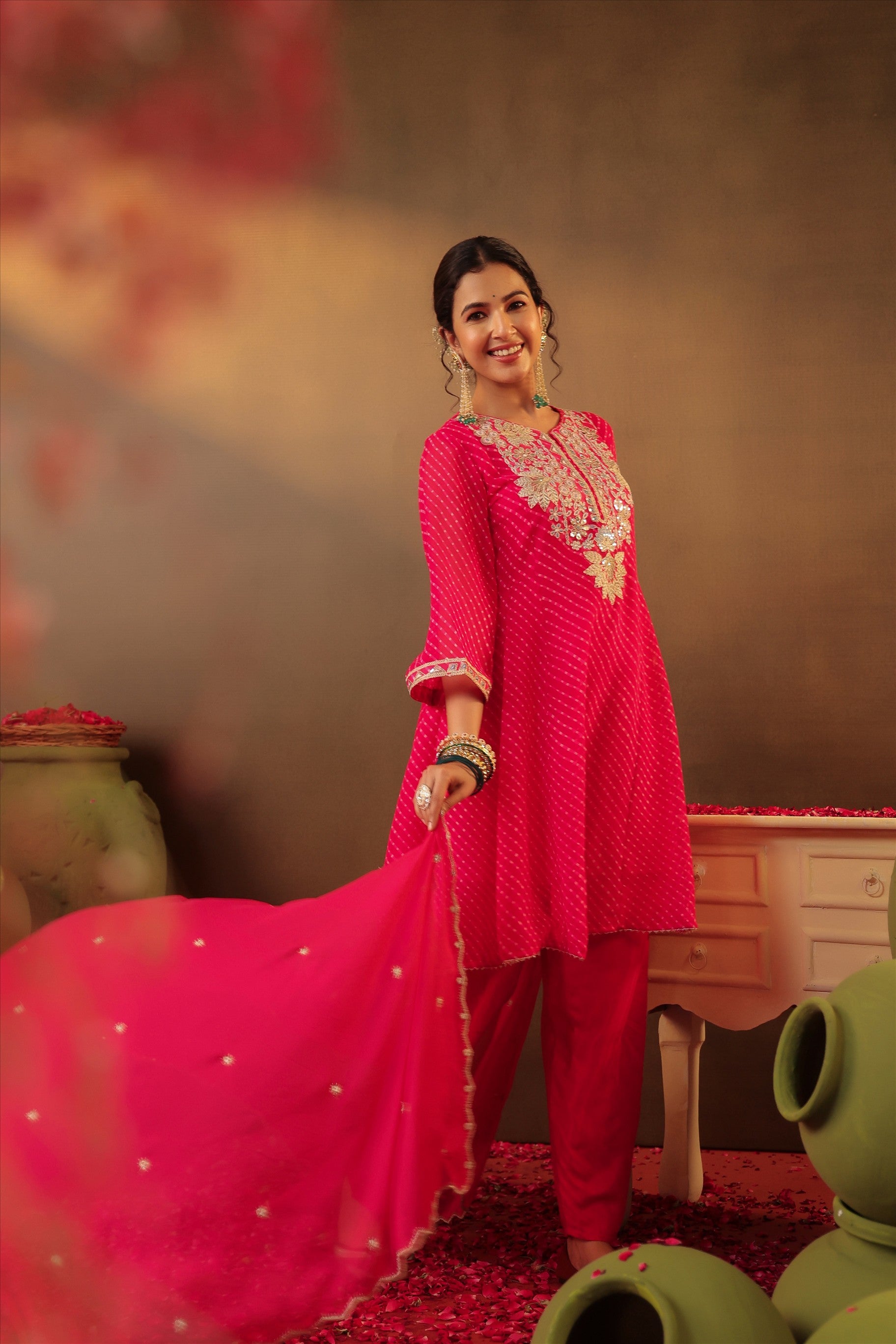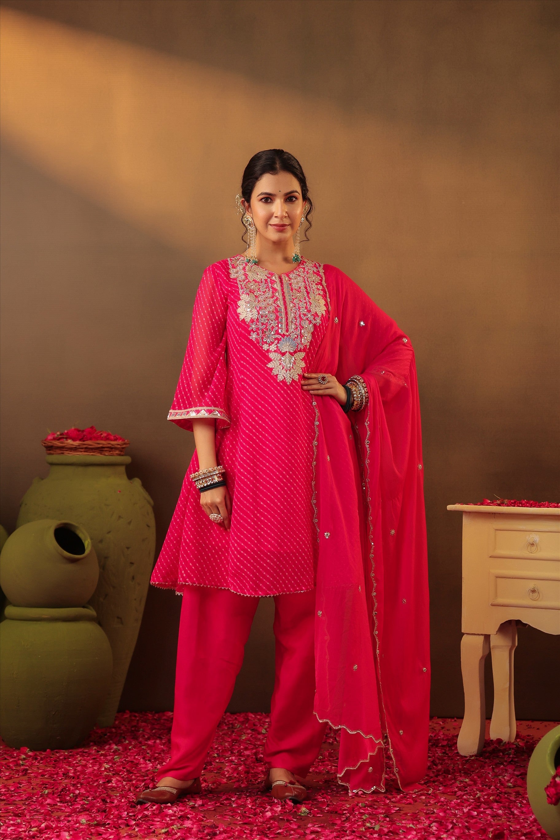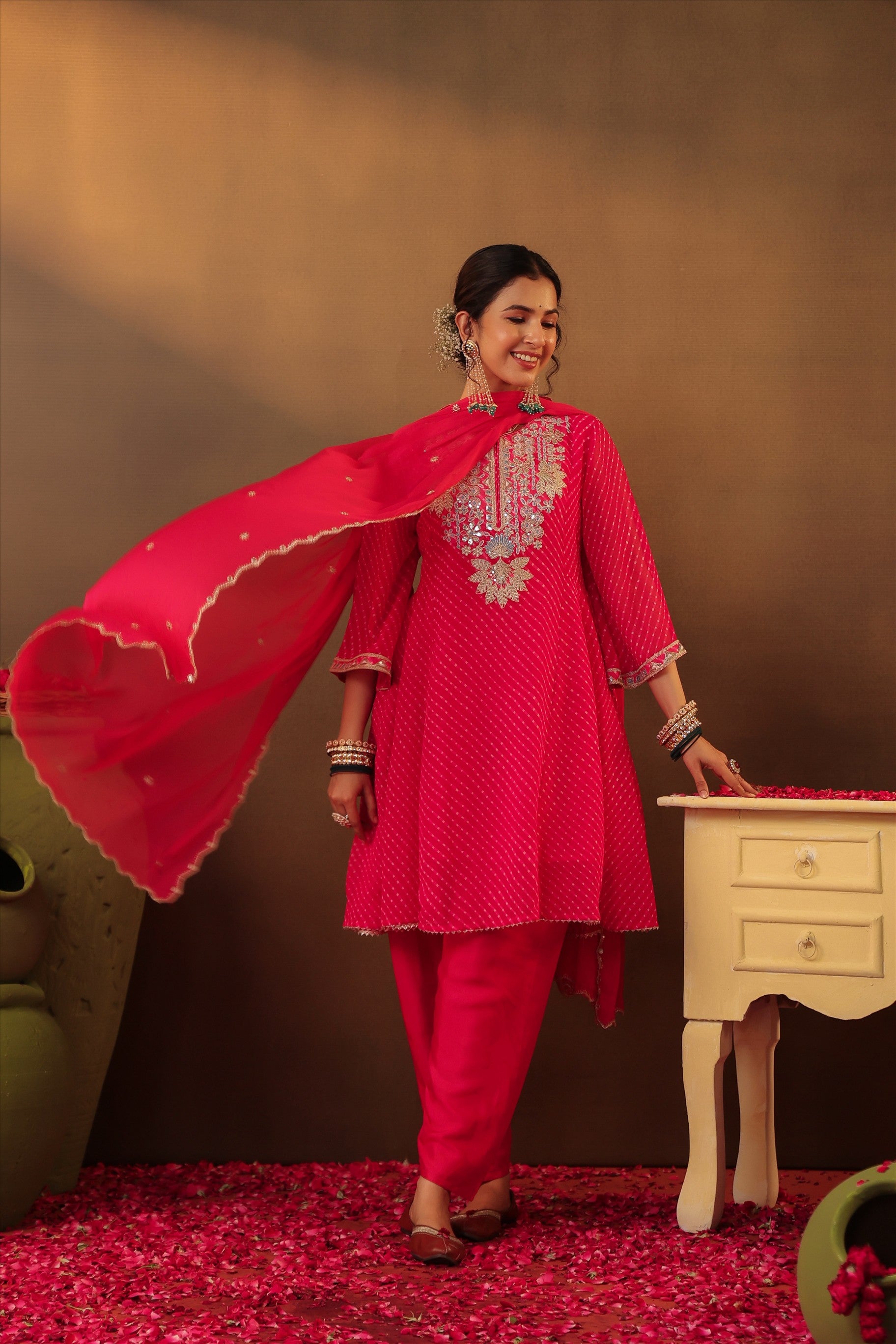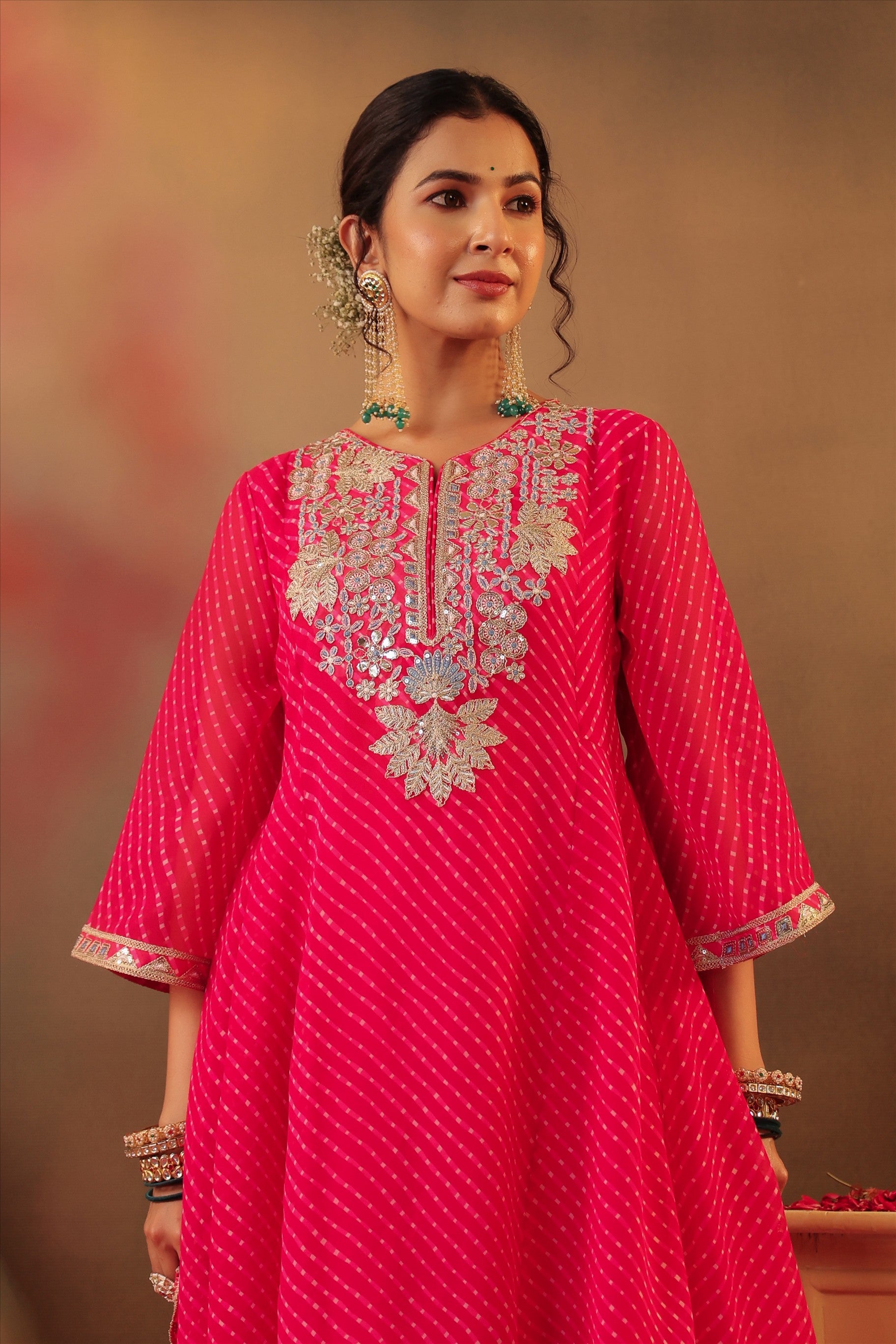 Fuchsia Mothra Embroidered Georgette Anarkali Suit Set