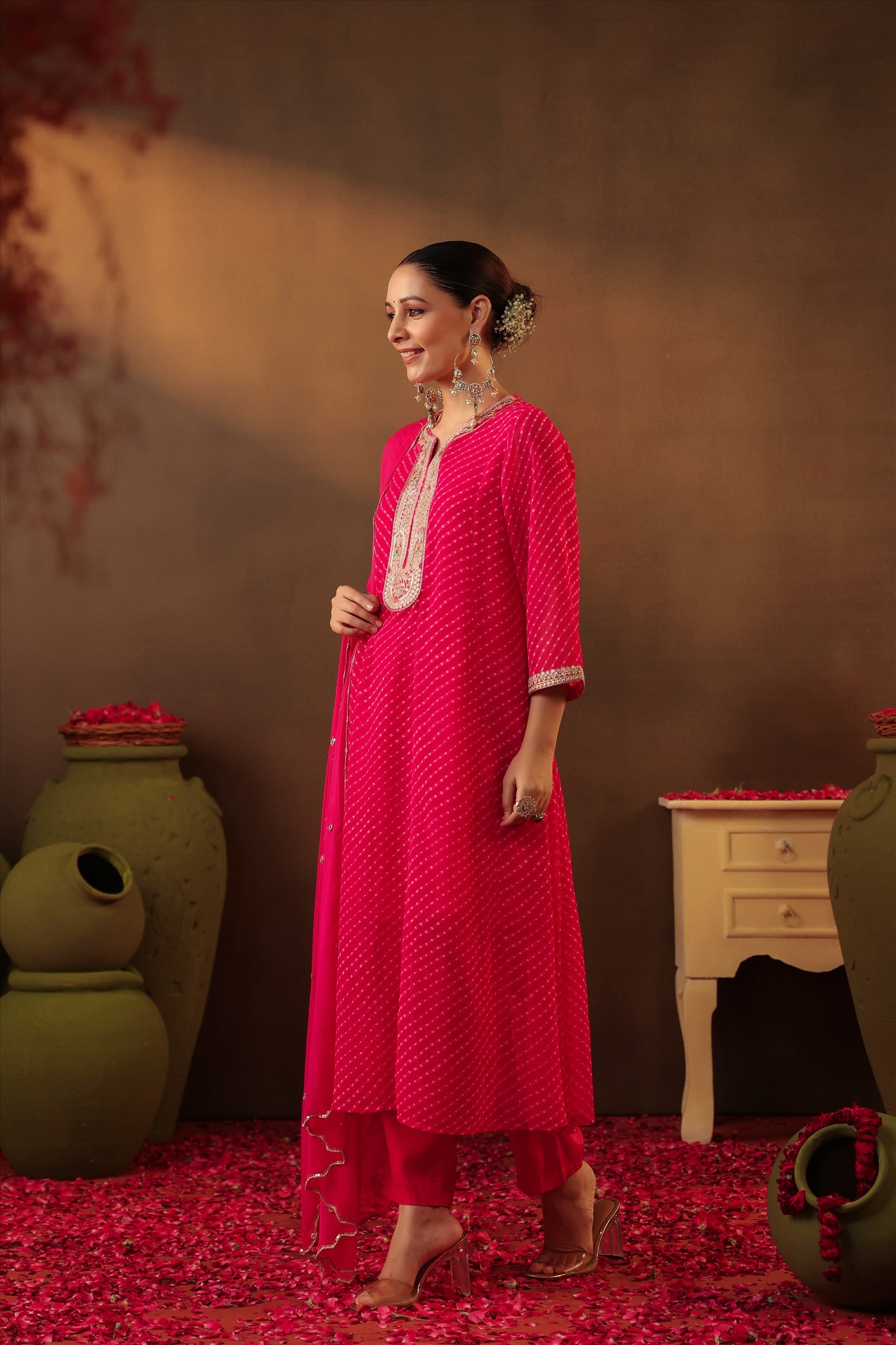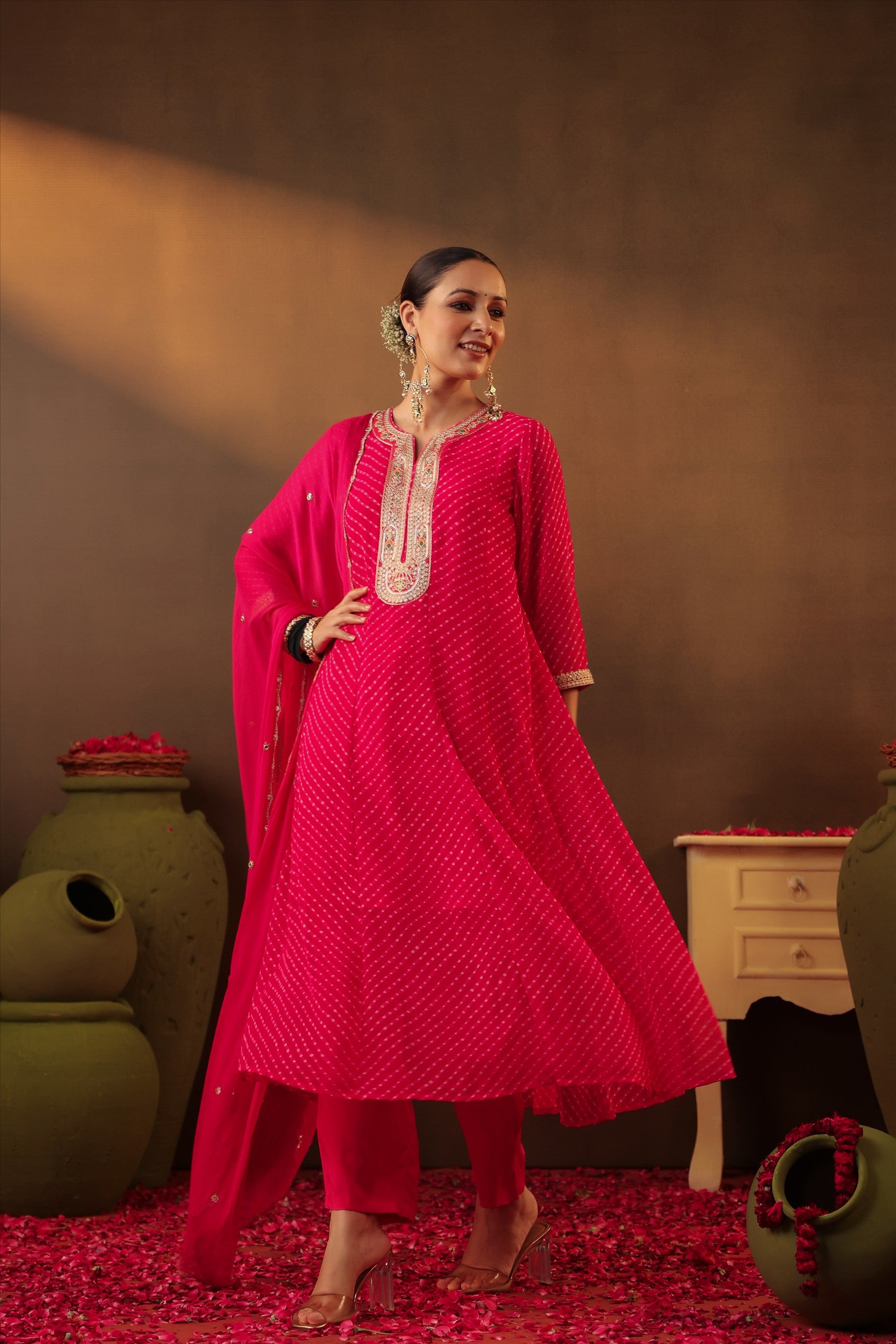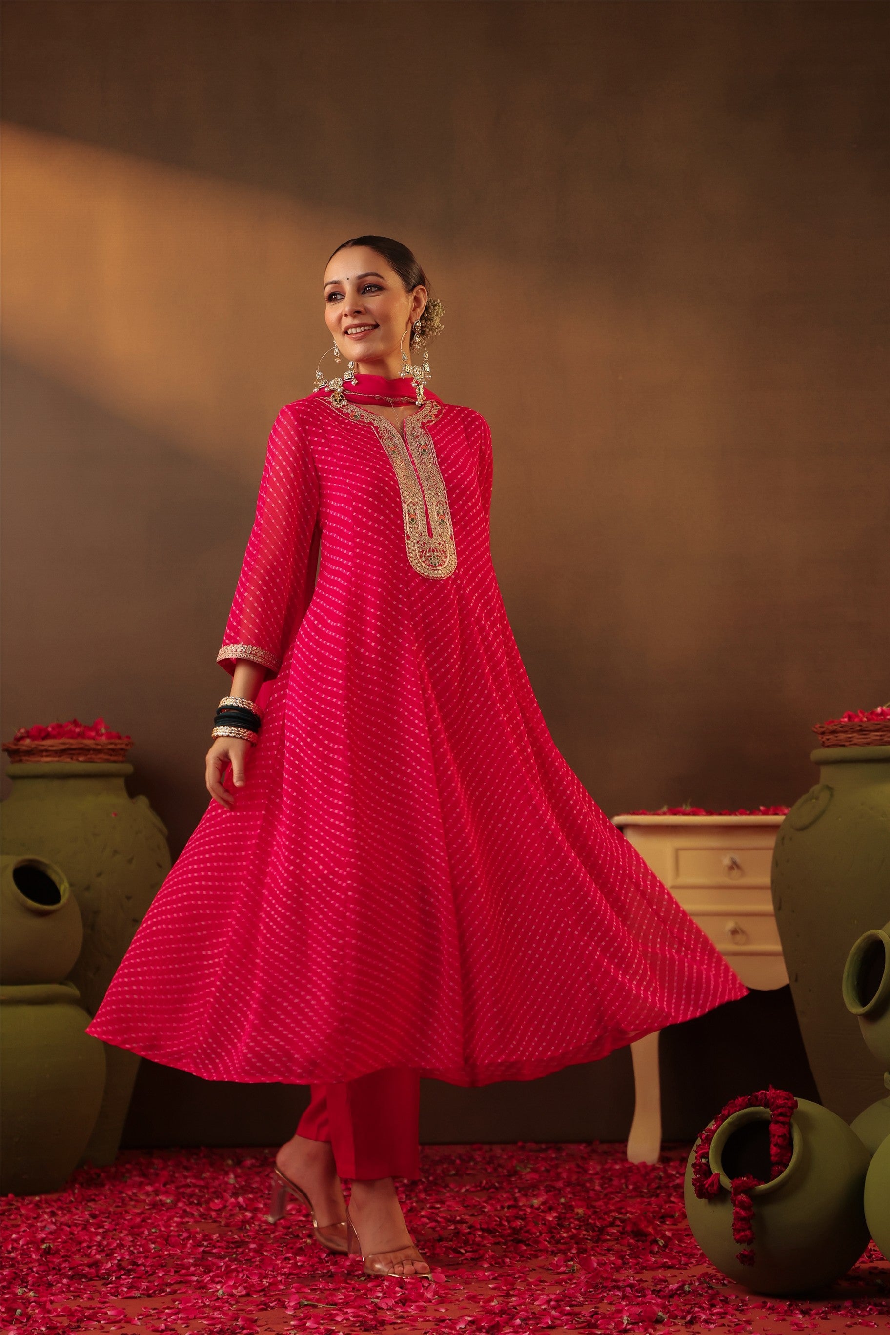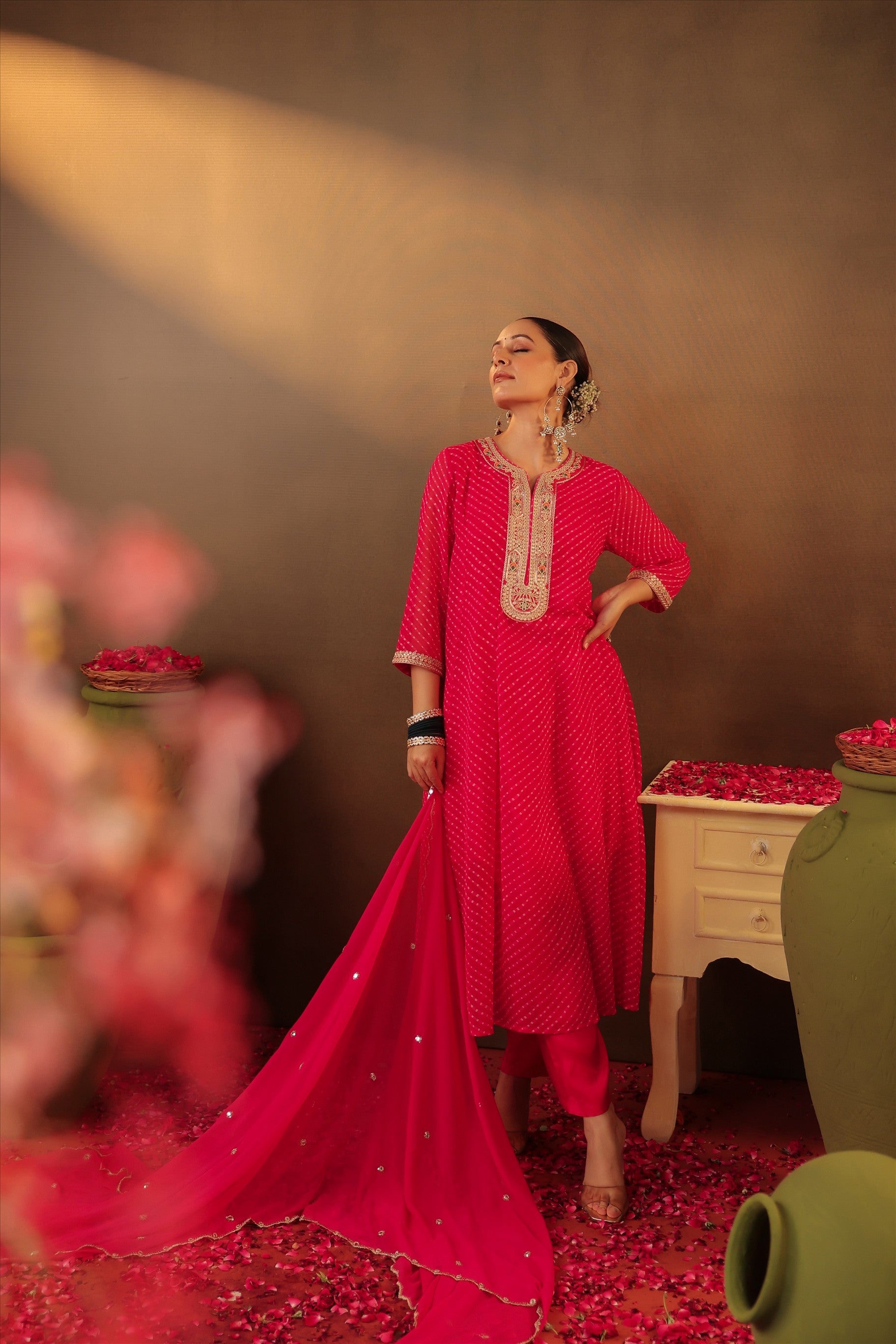 Fuchsia Mothra Georgette Embroidered Anarkali Suit Set