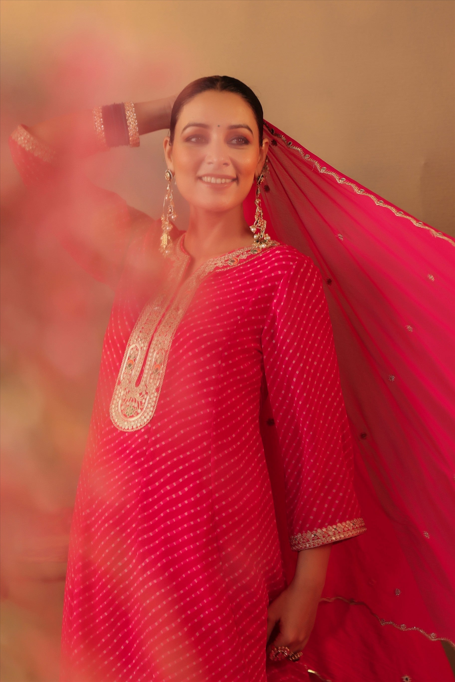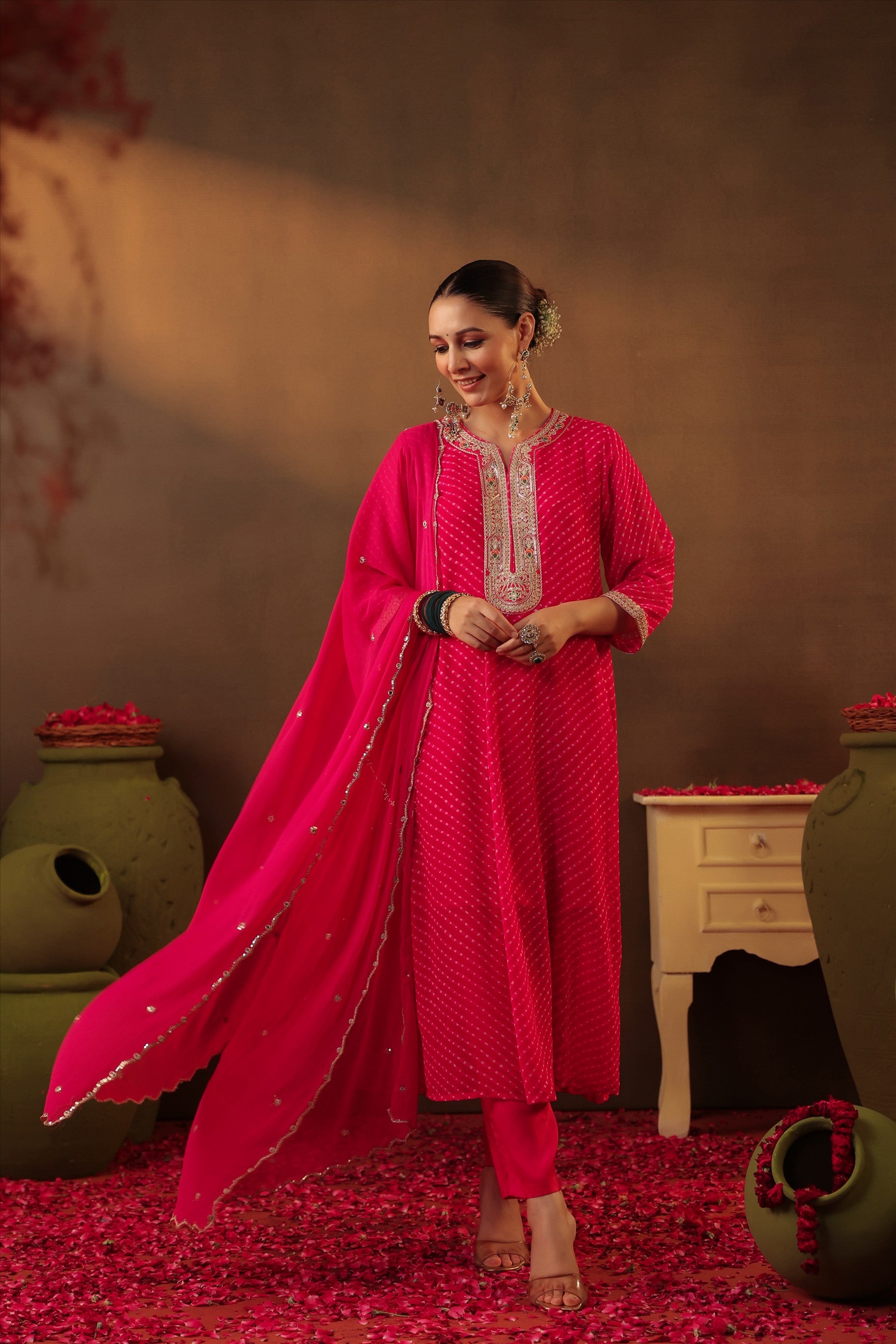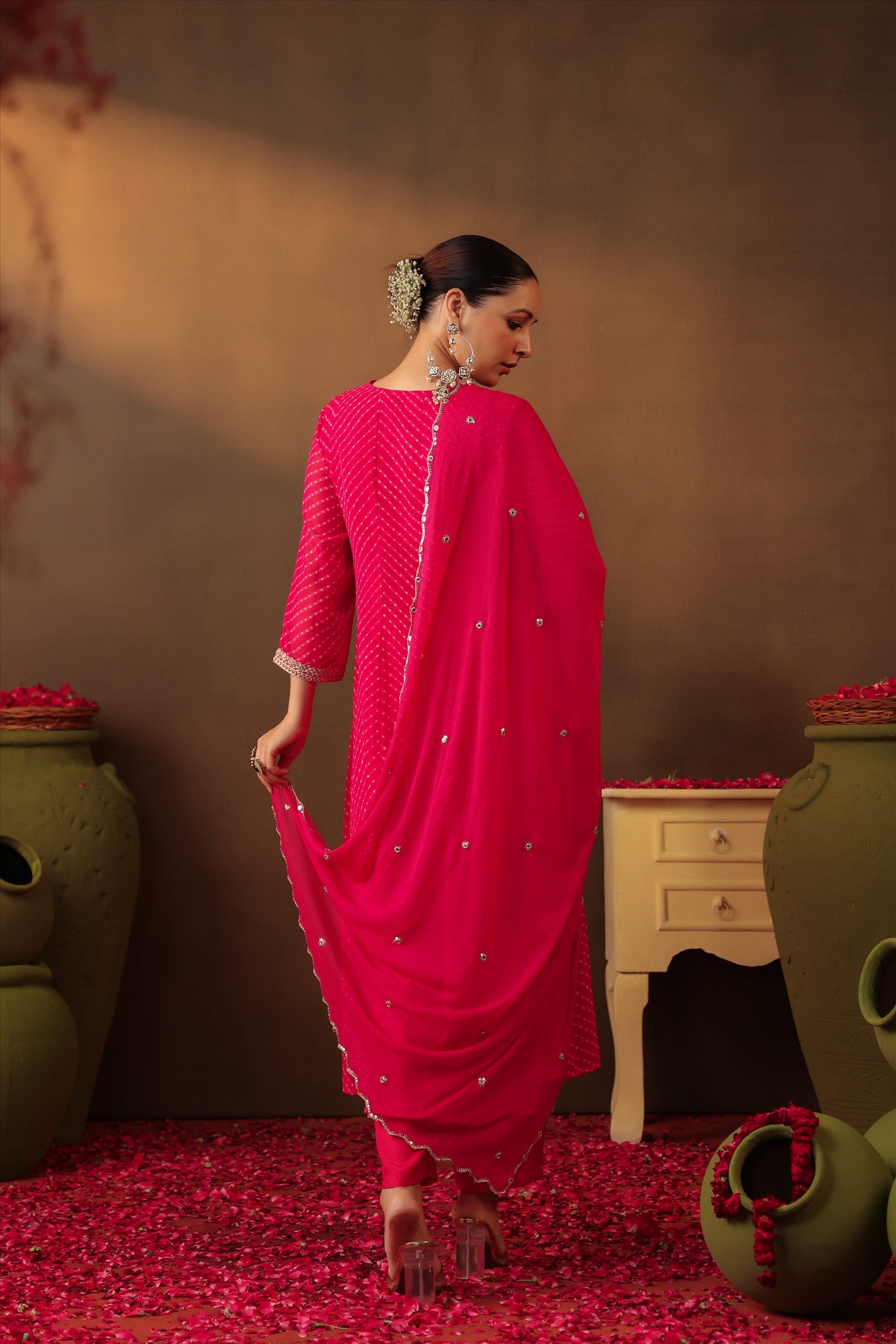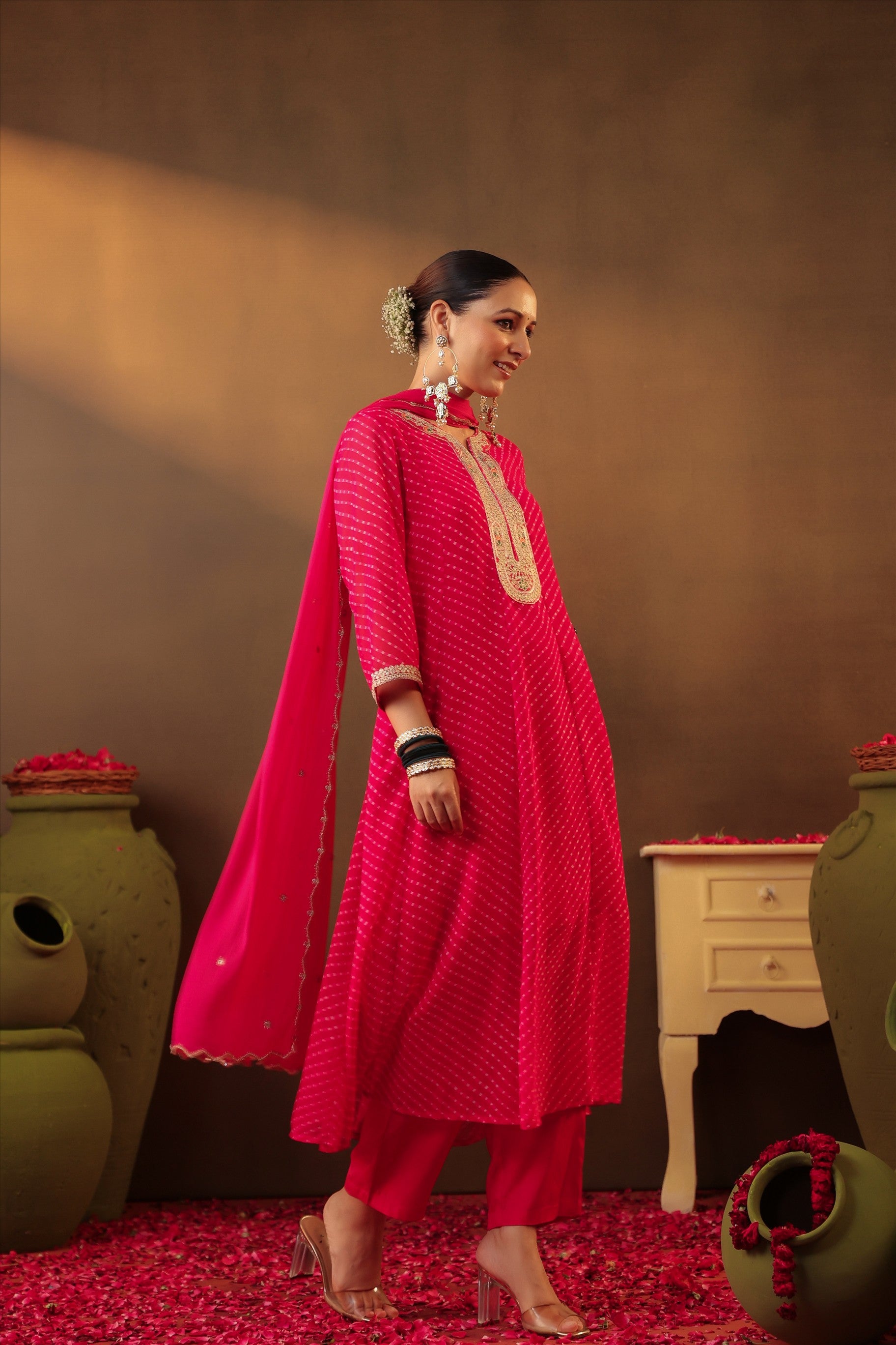 Fuchsia Mothra Georgette Embroidered Anarkali Suit Set