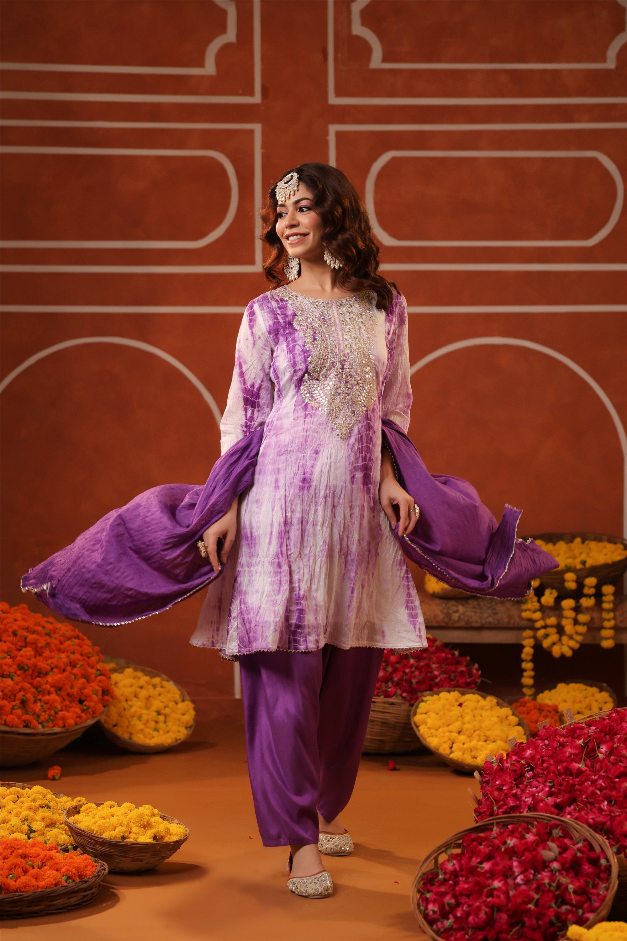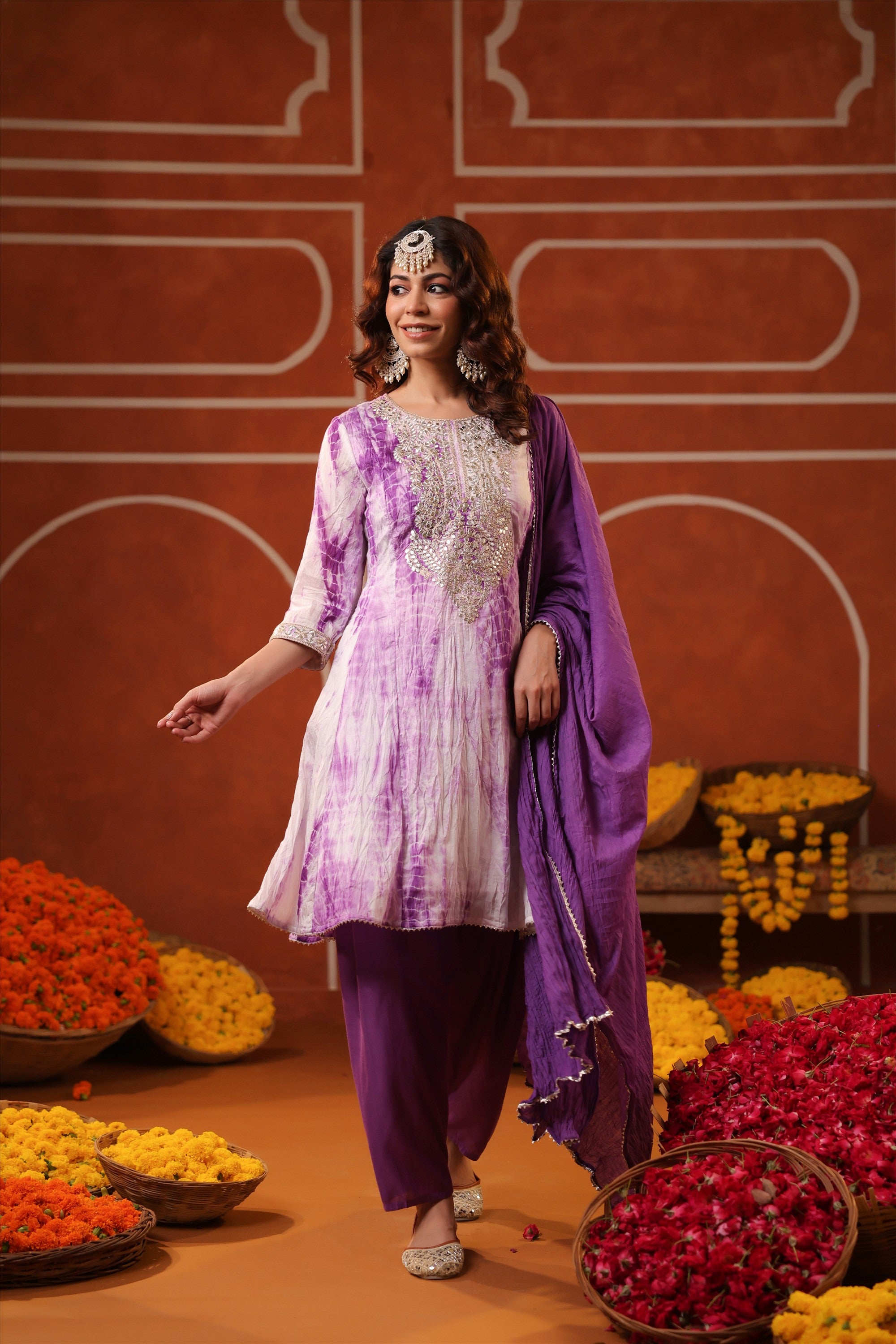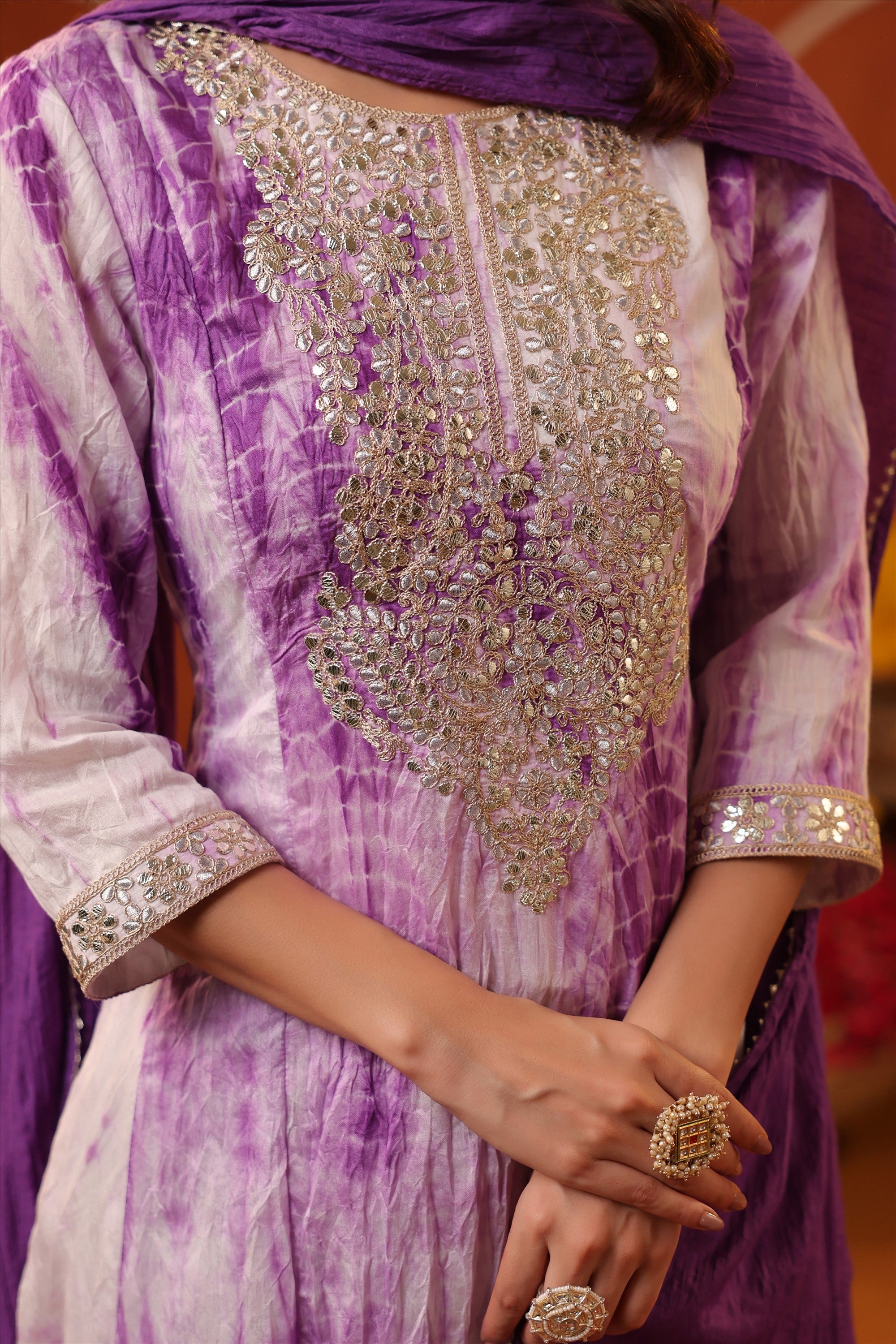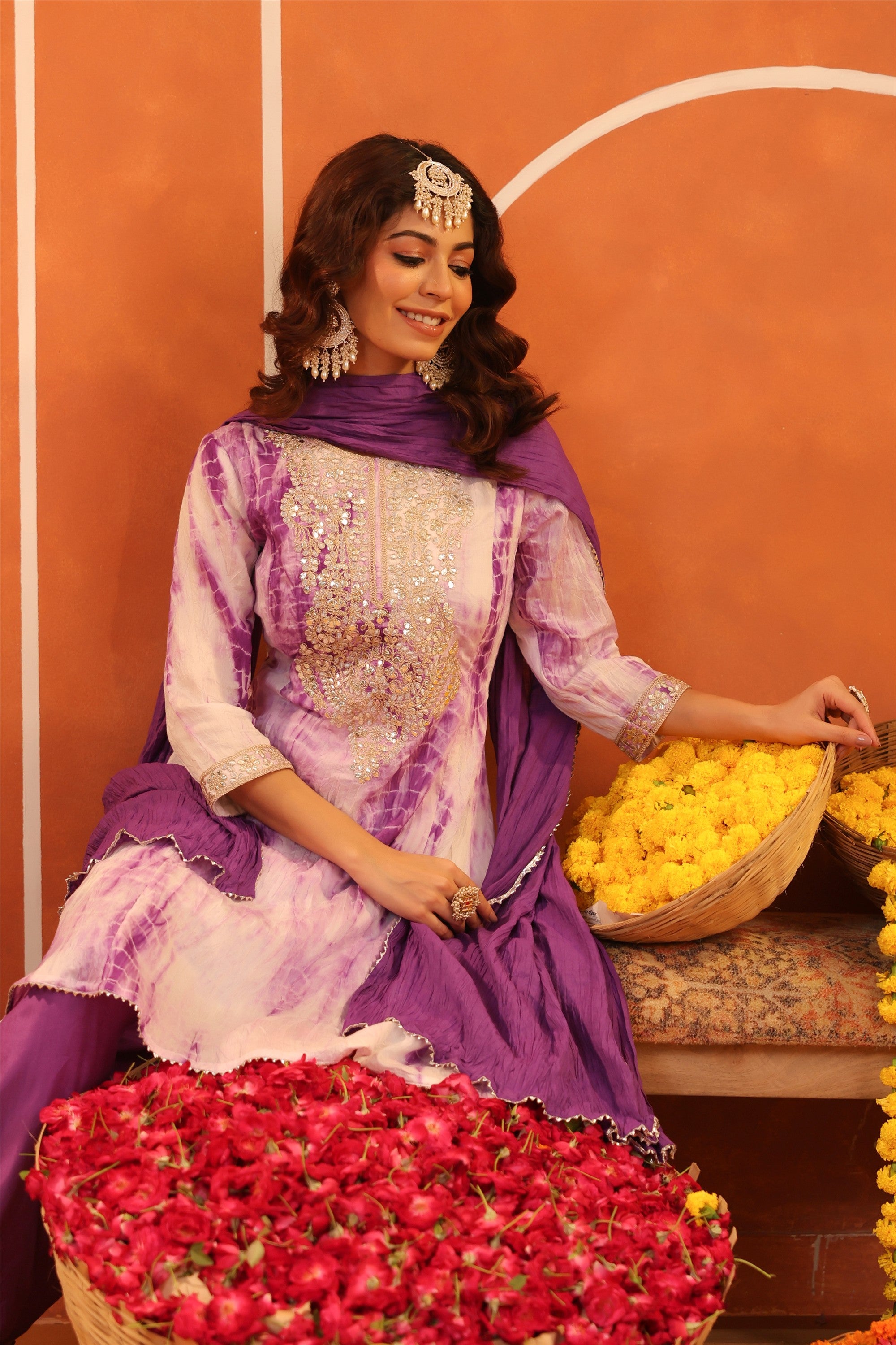 Elevate your everyday ethnic style with our Yellow Cotton Cambric Block-Printed Embroidered Straight Suit Set. Crafted for all-day comfort and effortless charm, the kurta features a stylish V neckline, 3/4th sleeves, and a classic side-slitted straight silhouette, beautifully highlighted with intricate embroidery on the yoke. It’s paired with solid yellow cambric pants and a block-printed mulmul dupatta, finished with bijia gota lace detailing that adds a festive sparkle. A graceful and versatile pick for summer festivities, daytime celebrations, and intimate gatherings.